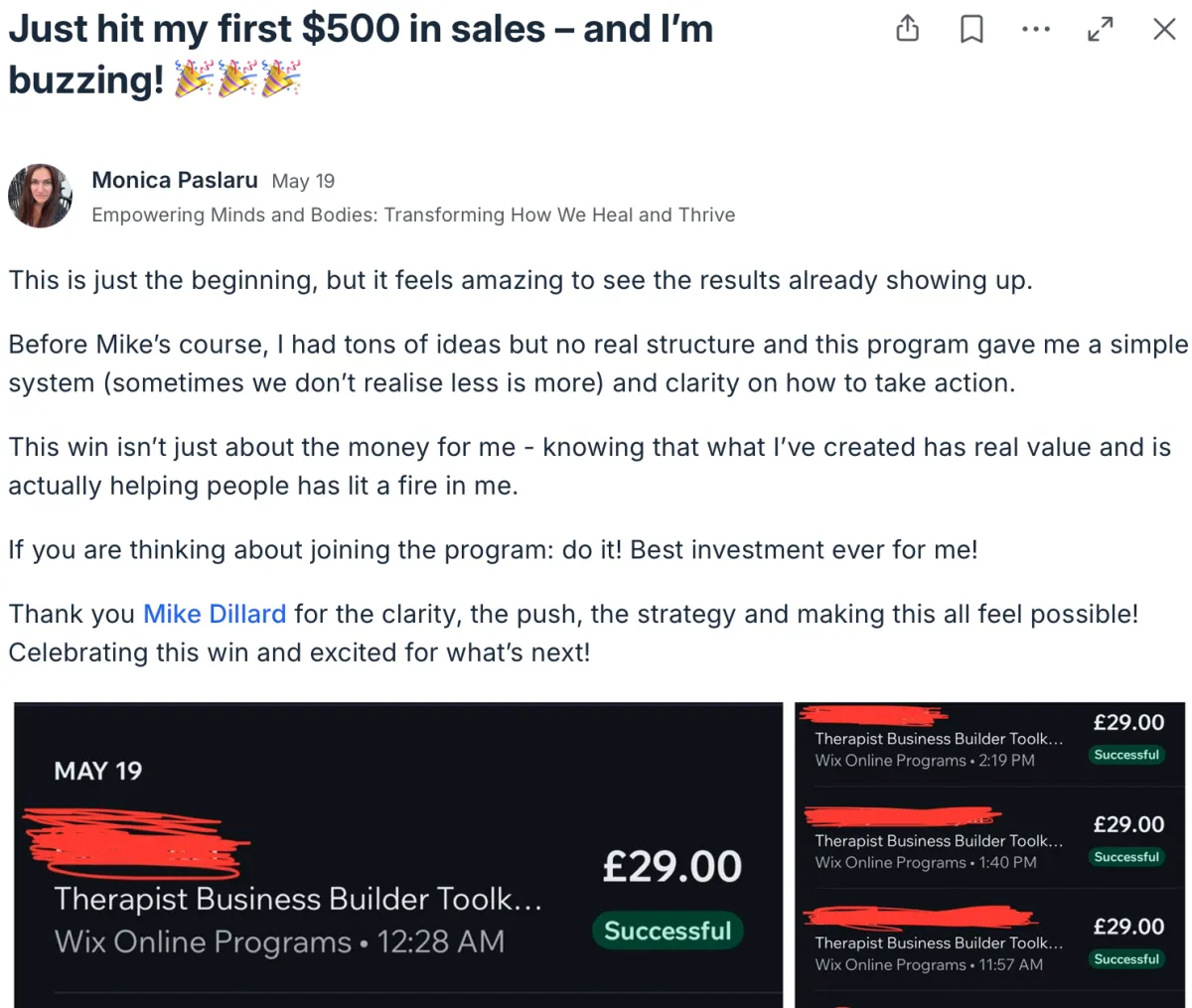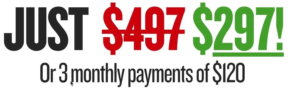 If you’re ready to create your first online product and make your first sales, you can register for “Your First $500” right now for just one single payment of $497 $297, or 3 monthly payments of just $120…